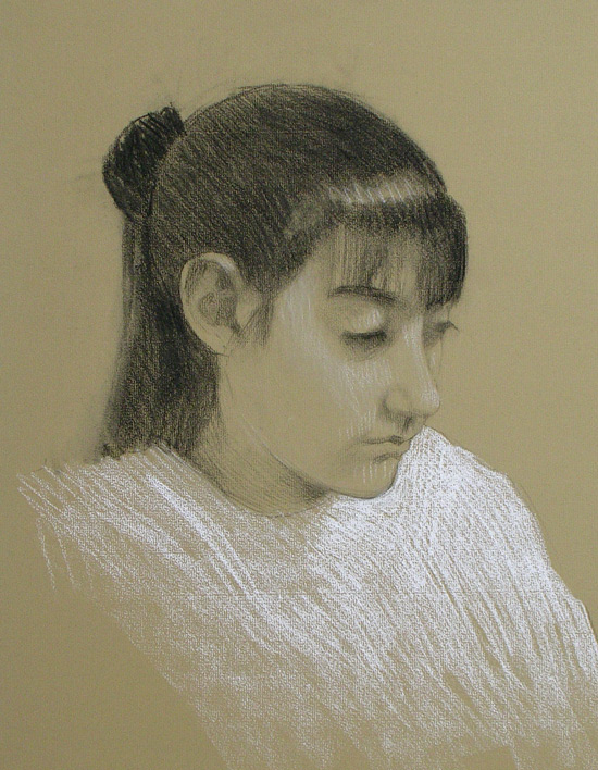 Kim@Eleven / Charcoal and chalk on toned paper / 15 x 20